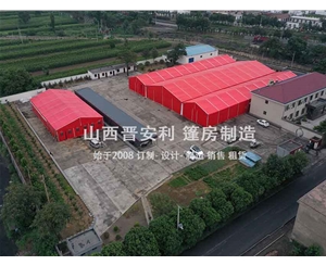 山西晉安利篷房制造有限公司,位于山西省太原市。我們專注設(shè)計(jì)、生產(chǎn)、制造、銷售、租賃各種跨度、尺寸的篷房。根據(jù)用戶要求提供訂制服務(wù)。 我們從一個(gè)小作坊起步,發(fā)展成為篷房、展覽設(shè)備的生產(chǎn)廠家,起初的產(chǎn)品主要用于戶外婚禮、房產(chǎn)奠基促銷、汽車展、服裝展、啤酒節(jié)、音樂節(jié)等各種展會(huì)、會(huì)展、會(huì)議會(huì)務(wù)活動(dòng),我們以質(zhì)量和服務(wù)贏得了客戶的信任。 此外,我們還為制造業(yè)、物流業(yè)、商品流通業(yè),建設(shè)戶外裝配式店鋪、臨時(shí)倉(cāng)庫(kù),裝配式體育館,臨時(shí)廠房等。 除了生產(chǎn)制造外,我們還維修所有篷房配件,如各種厚度、不同尺寸的頂布、邊布、扣眼釘、拉繩、拉鏈等,凡本公司的產(chǎn)品用戶均可享受篷布免費(fèi)維修。